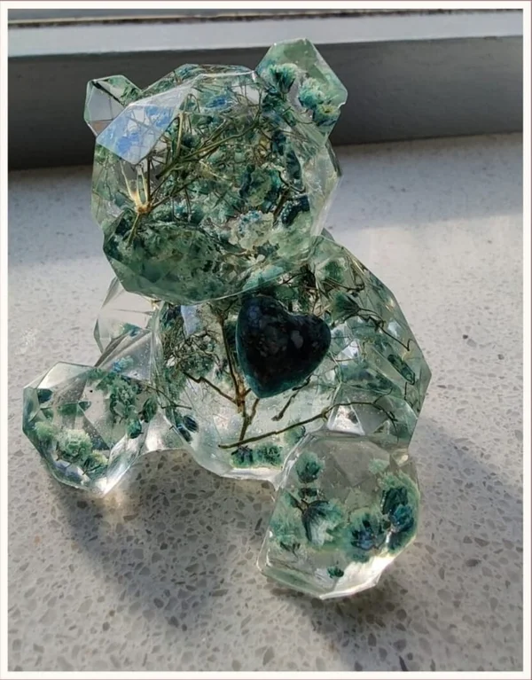 Onze epoxy-herinneringen worden met zorg en liefde gemaakt. Naast bloemen kunnen we ook as, een haarlokje, een stukje vacht of andere persoonlijke items verwerken.