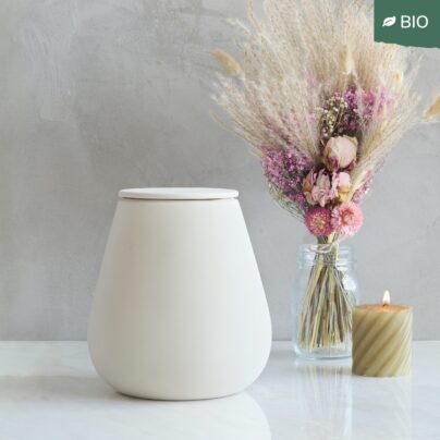 De Loop Living Cocoon™ is ’s werelds eerste levende doodskist die de natuur verrijkt door in slechts 45 dagen biologisch af te breken en onze voedingsstoffen op de meest natuurlijke manier terug te geven. De Loop Living Cocoon™ wordt in slechts 7 dagen gegroeid in onze groeifaciliteit in Delft, Nederland, van lokale paddenstoelsoorten en upcycled hennepvezels. Hierdoor is het 100% natuurlijk en GreenLeave gecertificeerd. De Cocoon wordt standaard geleverd met een zacht bedje van mos. Je kunt kiezen voor de ‘Wild’ of ‘Calm’ Loop Living Cocoon™.